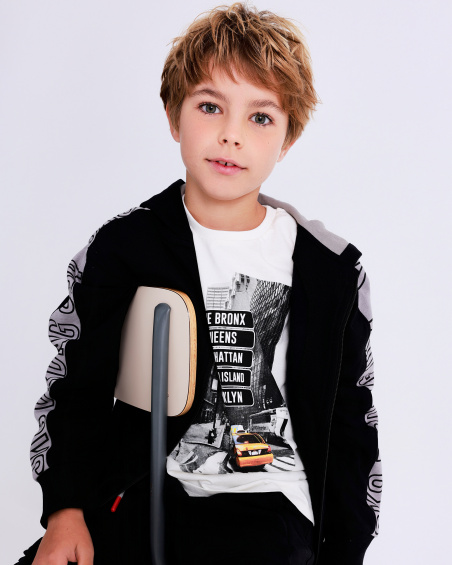 Black hoodie for boys with side stripes and print | tuc tuc