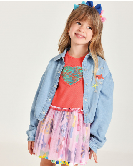 Camicia da bambina in tessuto in denim leggero